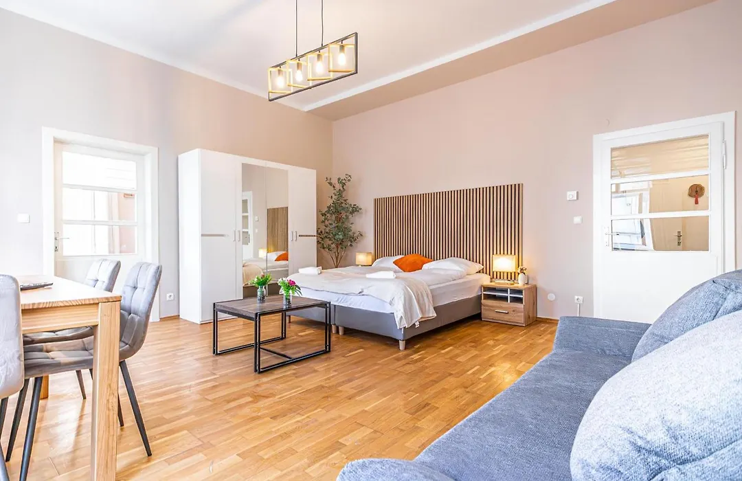 Zu den Selbstversorger-Einrichtungen gehört komplette Küche mit einer Mikrowelle, einem Wasserkocher und einem Kühlschrank. Das Restaurant Vinum et cetera liegt nur 350 Meter zu Fuß von dieser Unterkunft entfernt. Die Bushaltestelle Kleistgasse liegt nur wenige Schritte entfernt von diesem 54 m^2 großen Apartment.